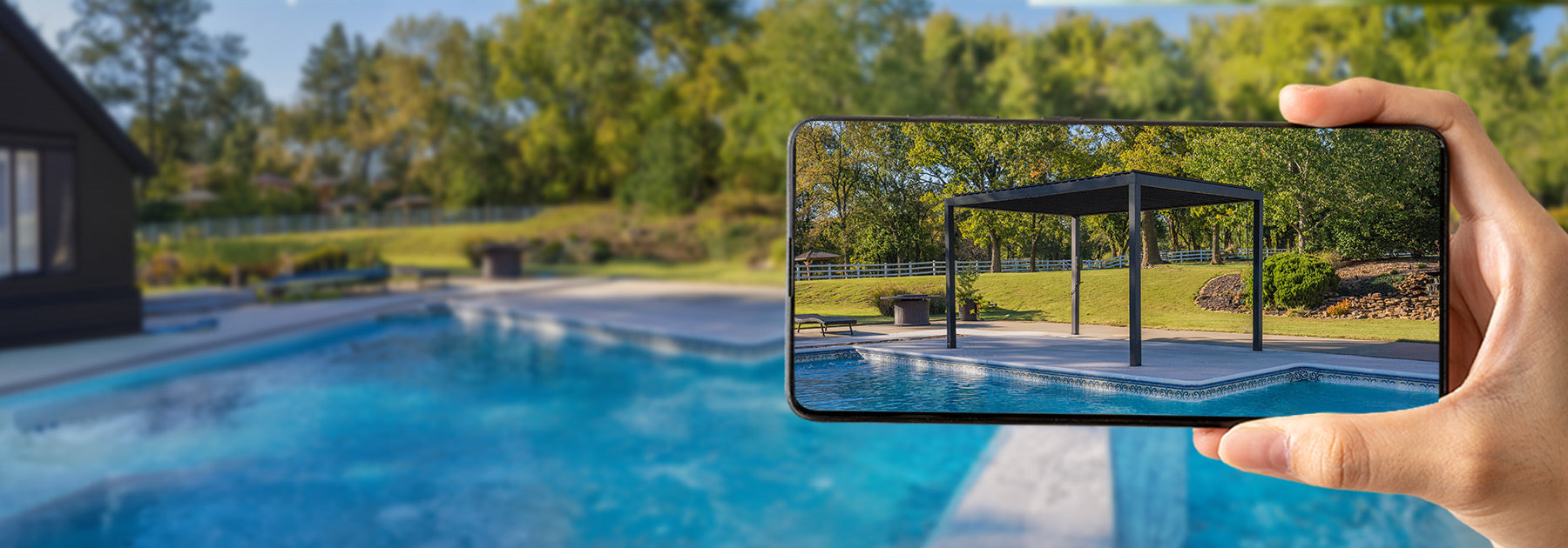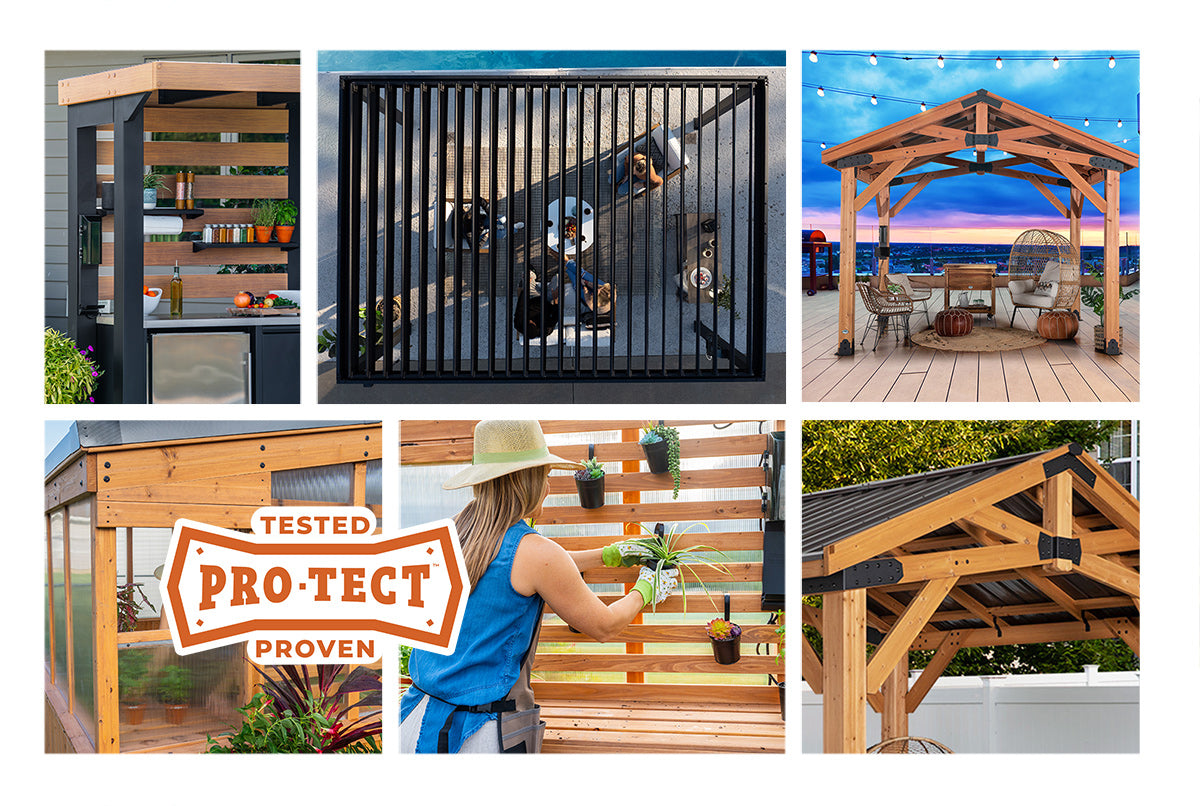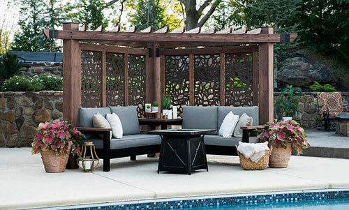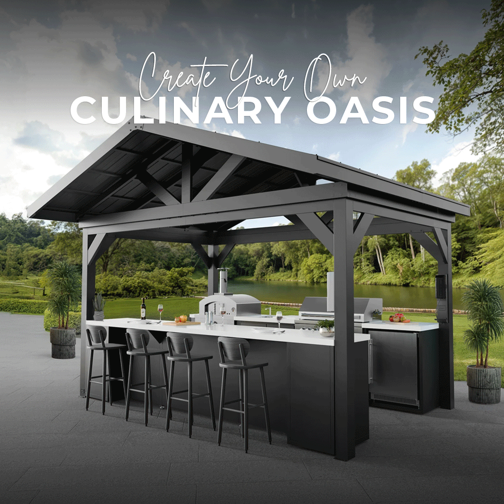 A stunning outdoor gazebo crafted for comfort with a bold architectural profile and all-weather durability.