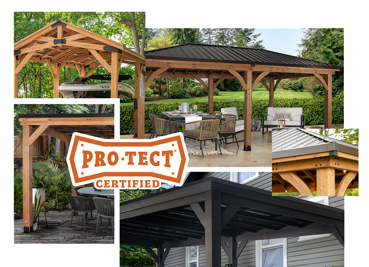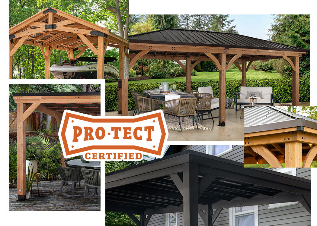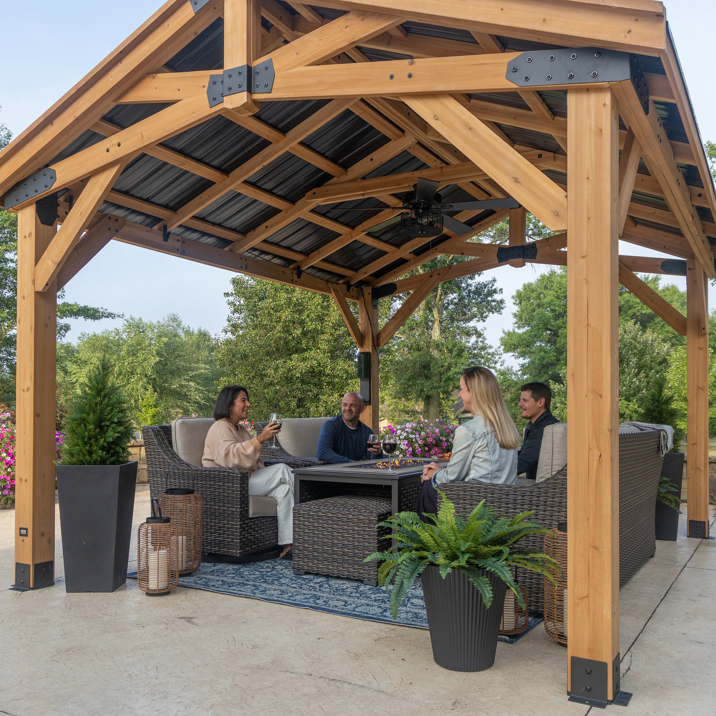 Charming meets contemporary in this large gazebo, featuring heavy-duty cedar beams and sleek steel accents.