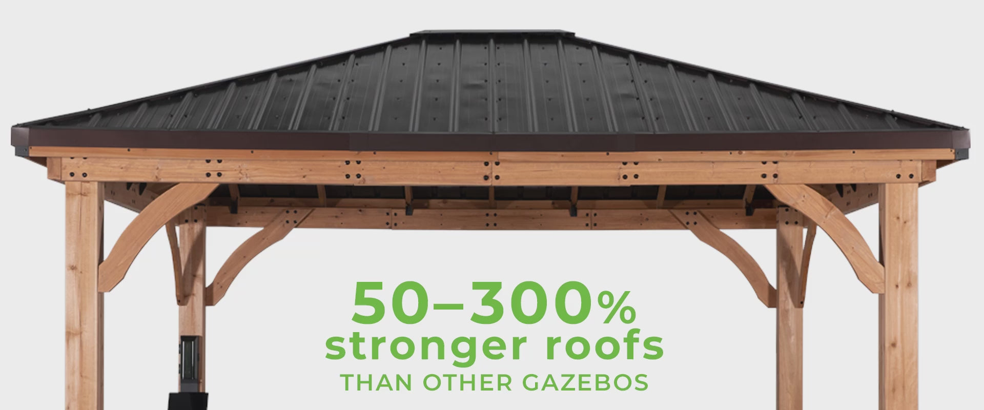 Snow can weigh up to 13 lbs. per square foot. If the roof of your gazebo is a soft top or made from weaker metals, like aluminum, that means one decent snowfall can lead to a total collapse.