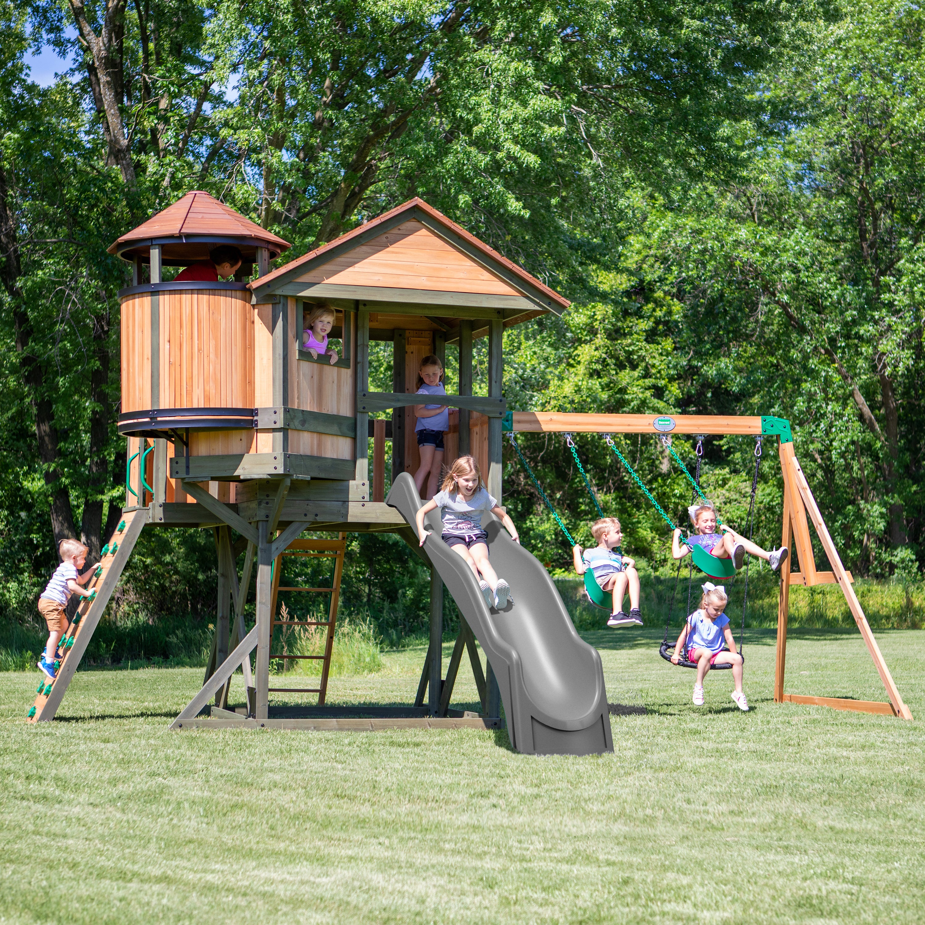 While we understand your desire for customization, our original swing set designs have undergone rigorous safety testing and received ASTM (American Society for Testing and Materials) approval. To maintain the highest safety standards, we cannot authorize alterations to our products. Ensuring your family's safety remains our top priority, and we are dedicated to providing playsets that meet the strictest safety guidelines within our original configurations.