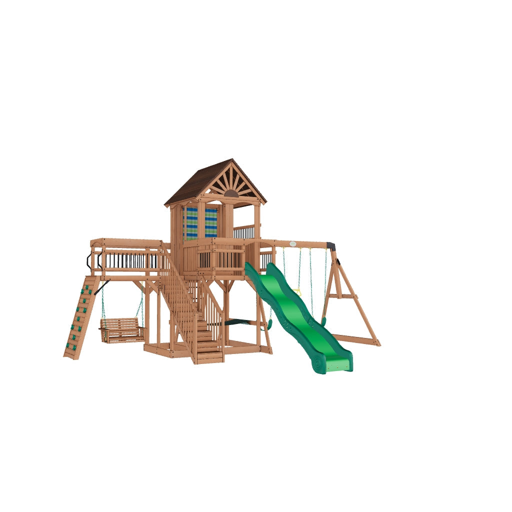 Our wooden swing sets offer a wide range of sizes, features, and styles that will turn any backyard into a playground.