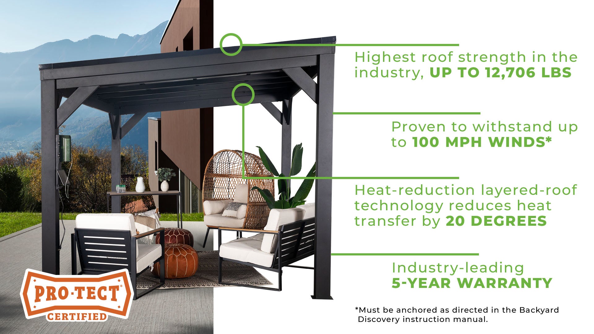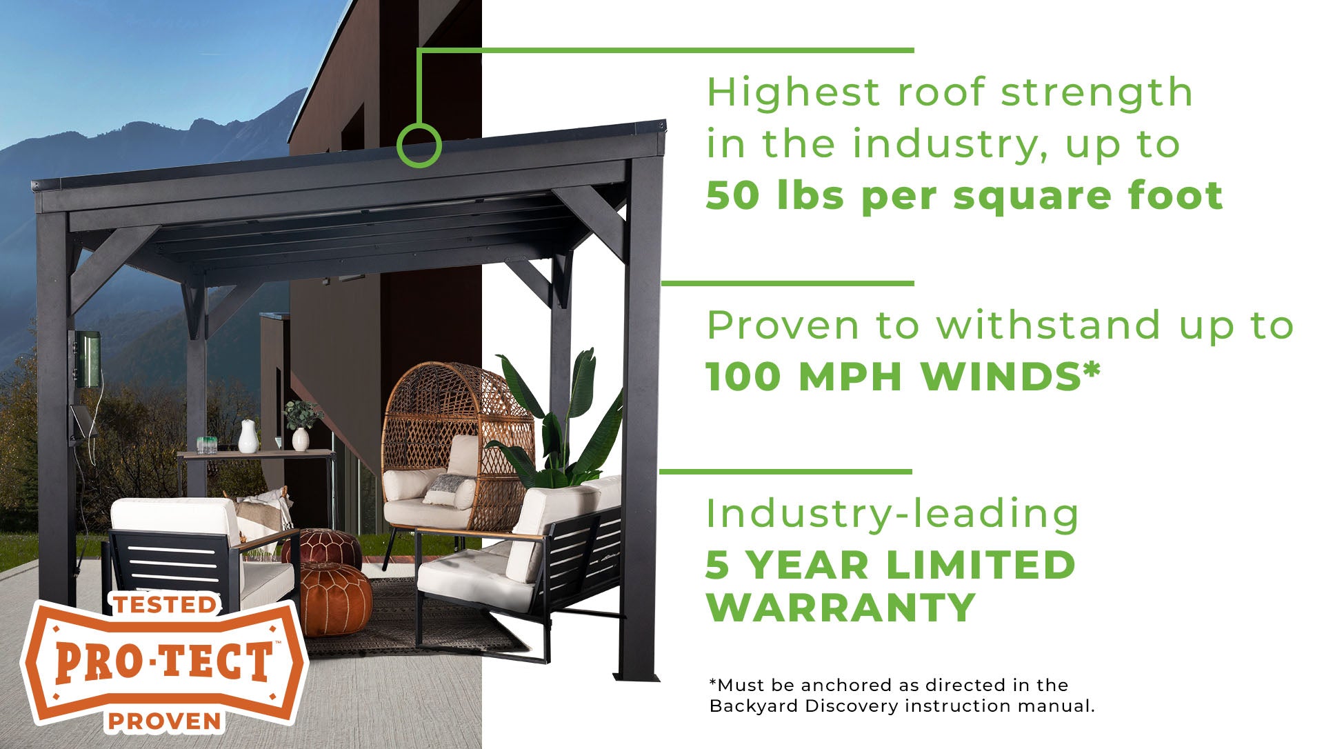 To ensure we’ve engineered the best possible gazebo for you, we’ve tested each of our designs to certify that they achieve the absolute highest standards in the industry.