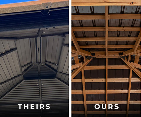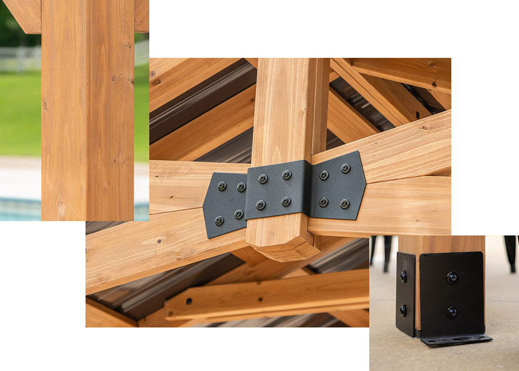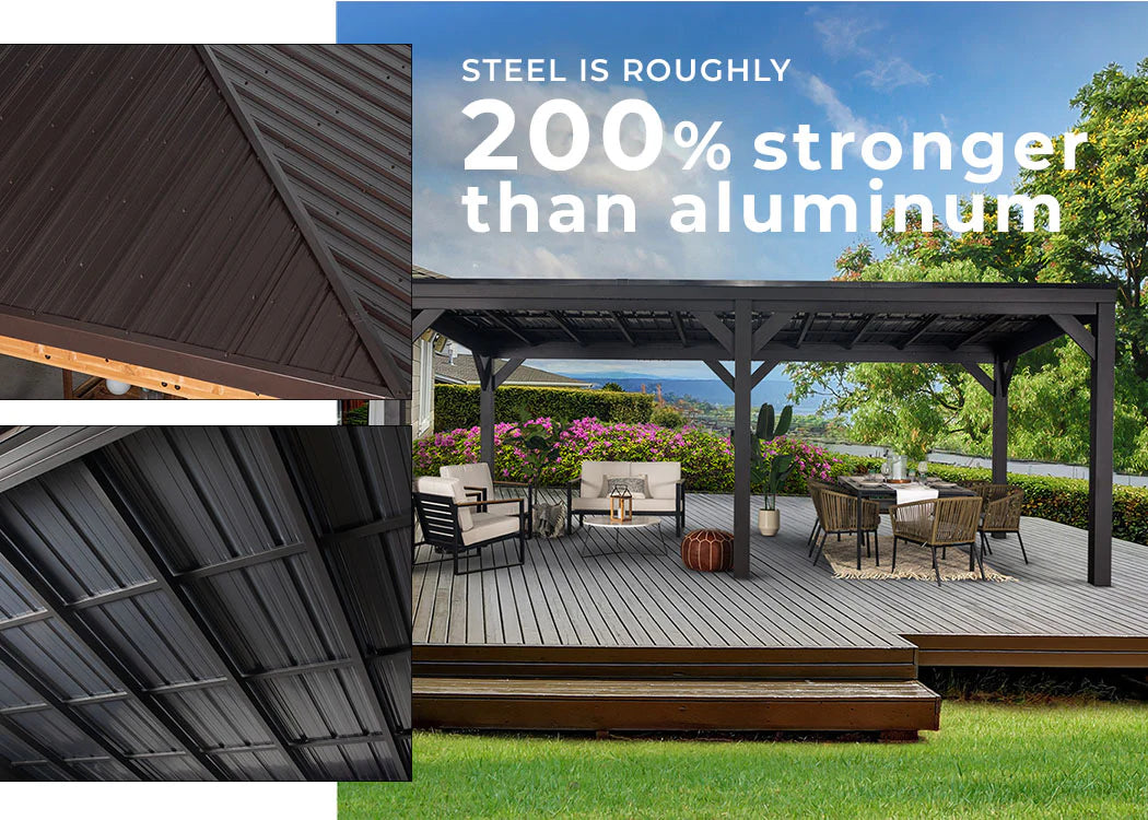 Additionally, layered steel provides a better heat barrier and distribution, helping keep what’s directly under the gazebo roof from reaching dangerous temperatures.