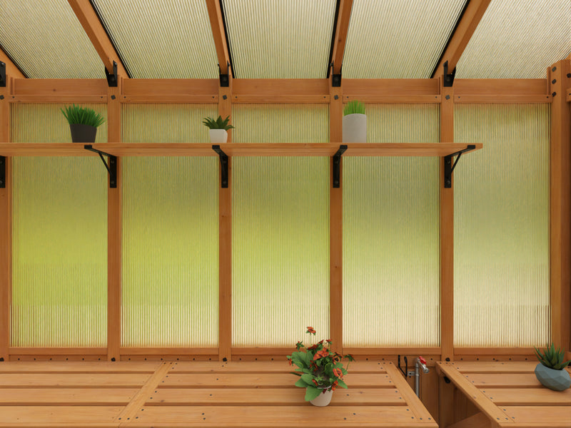 With cedar wood, a strong roof, and an array of useful features, this greenhouse combines the best materials with thoughtful design.