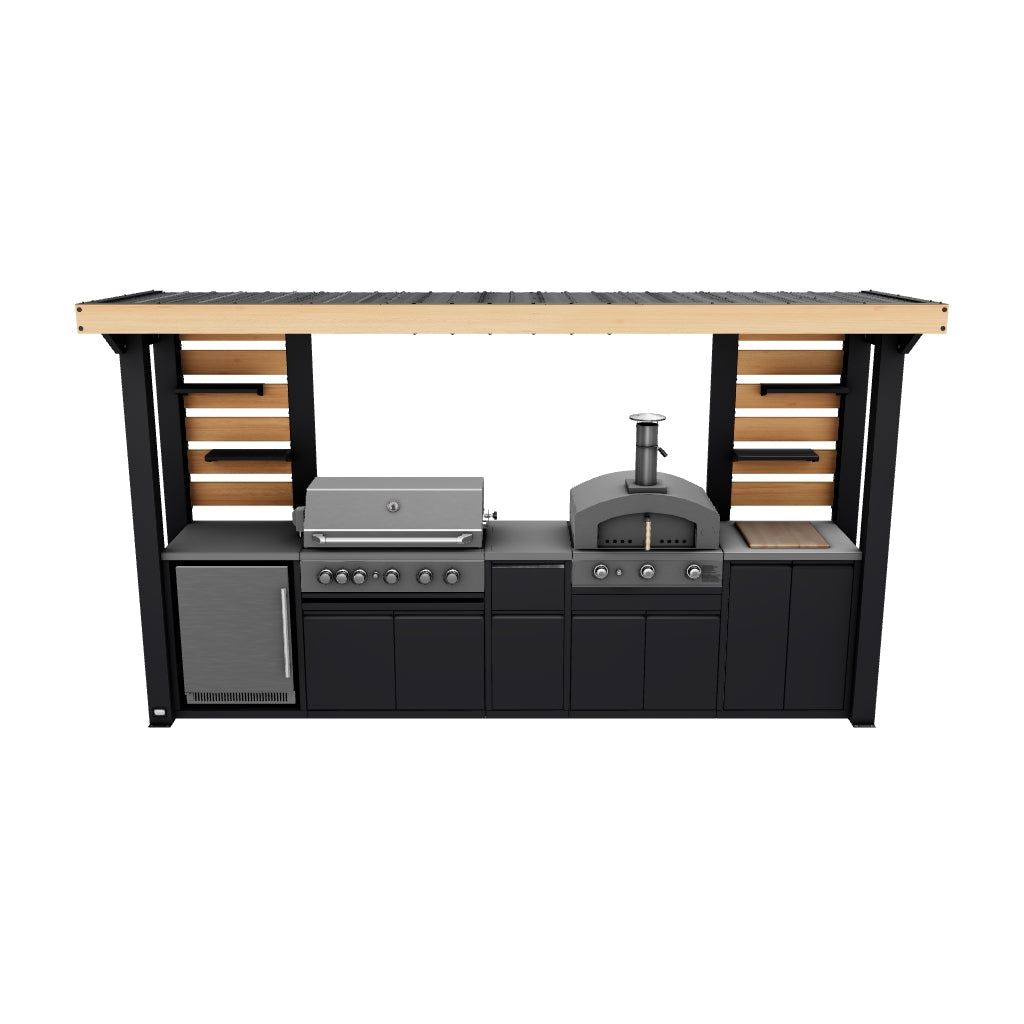 Fusion Flame 2 Outdoor Kitchen with Grill, Pizza Oven, and Refrigerator