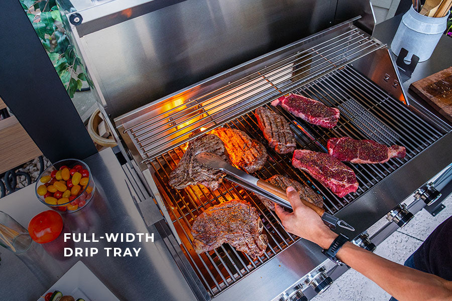 This roomy outdoor kitchen has been thoughtfully designed to give you everything you need in a great-looking, all-in-one package that makes the entire process incredibly easy.