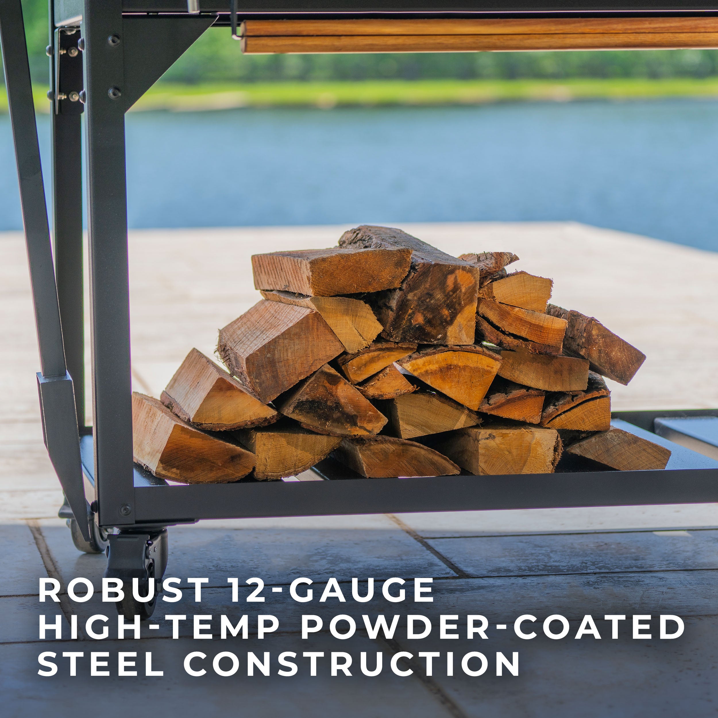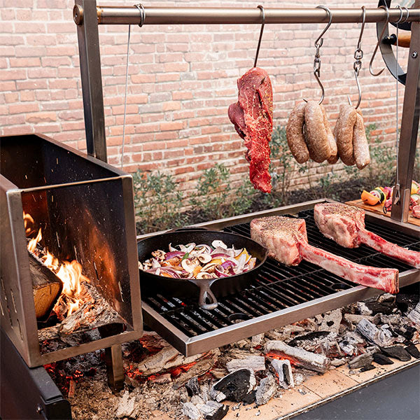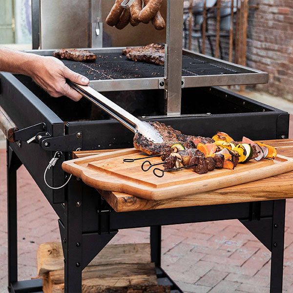 Santa Maria-style precision with adjustable grill grates from 2” to 24”, allowing for searing and slow cooking.