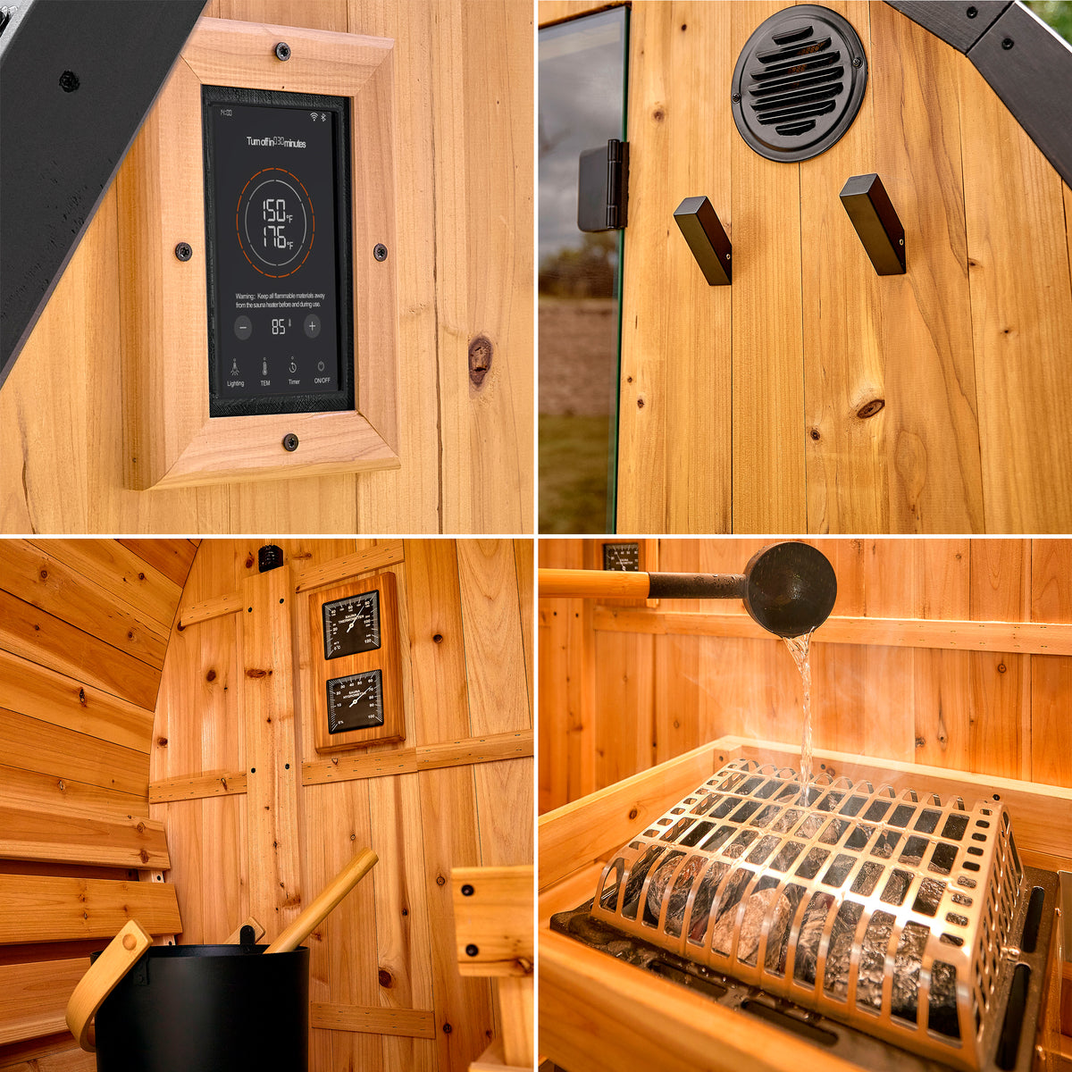 | Accessories Included | Sauna Stones, Robe Hooks, Bucket, Ladle, Thermometer |