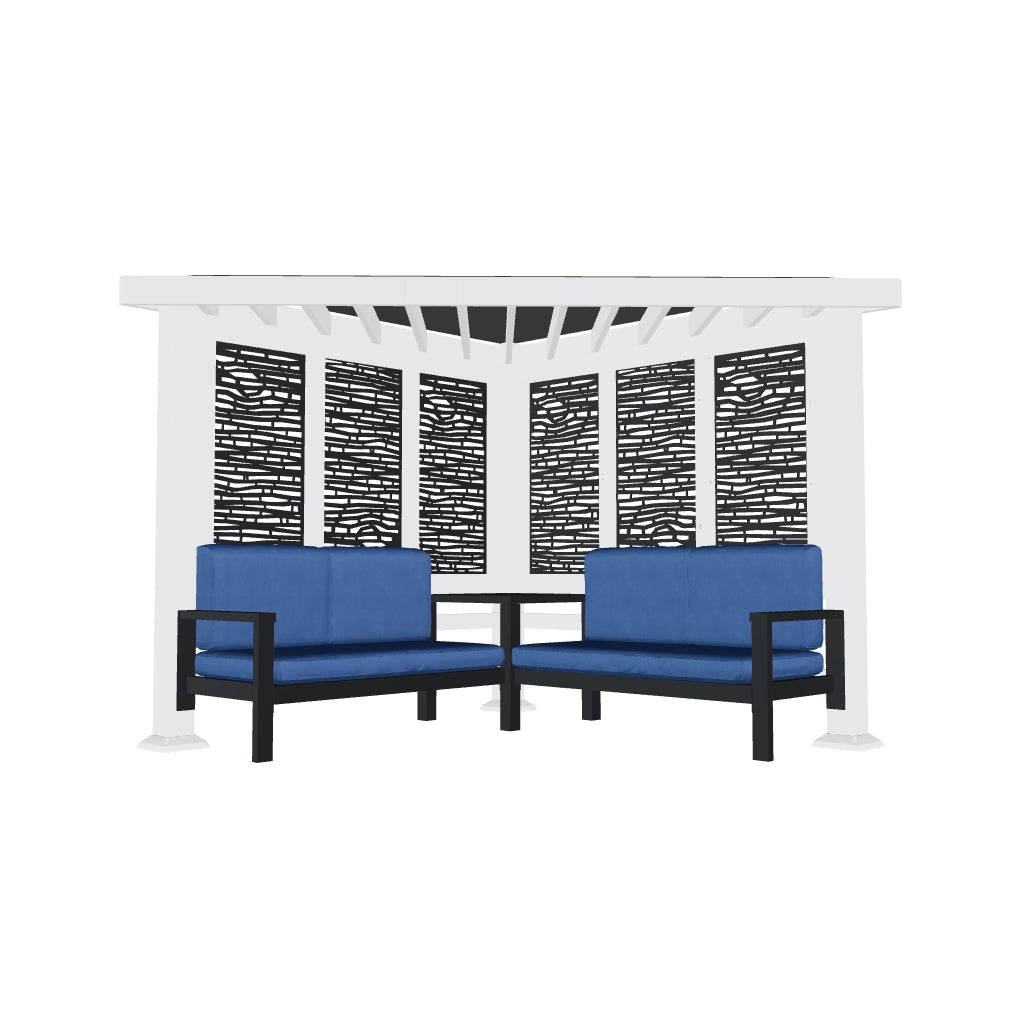 Ridgedale Modern Steel Corner Pergola with Conversational Seating