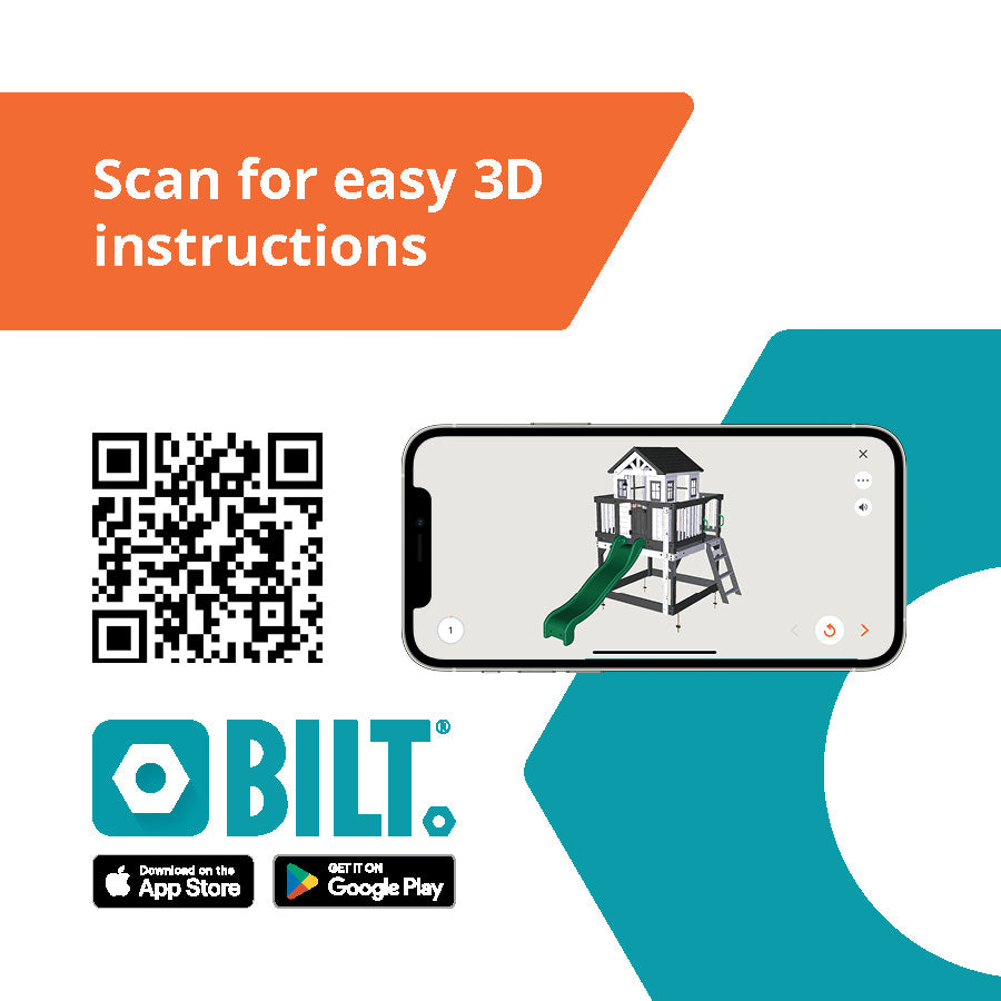 Assemble your playhouse easily by following the step by step instructions on the BILT® app for select playhouse models.